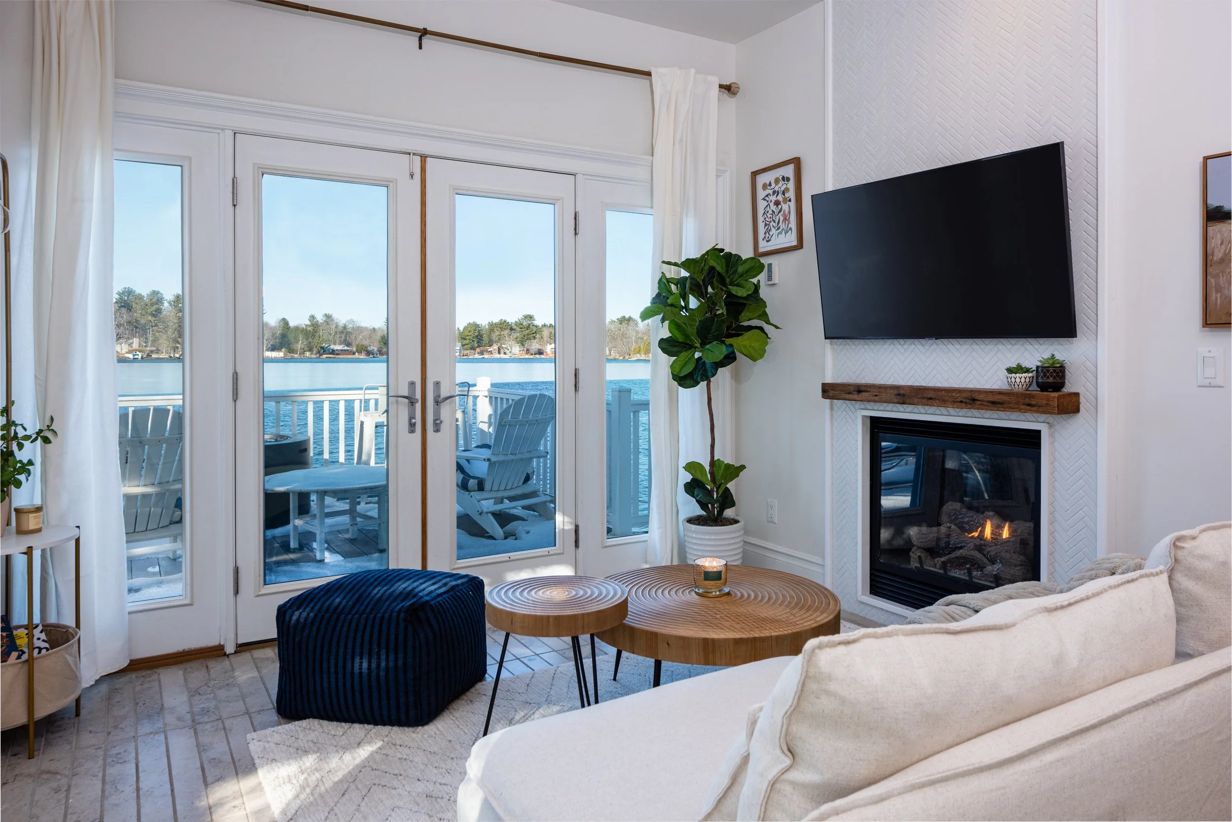 In the living room you’ll find our gas real flame fire place. To turn it on just use the remote control next to it. You can adjust the flame and amount of heat you want. The place will be very warm in no time. Please be careful as the glass can become very hot!