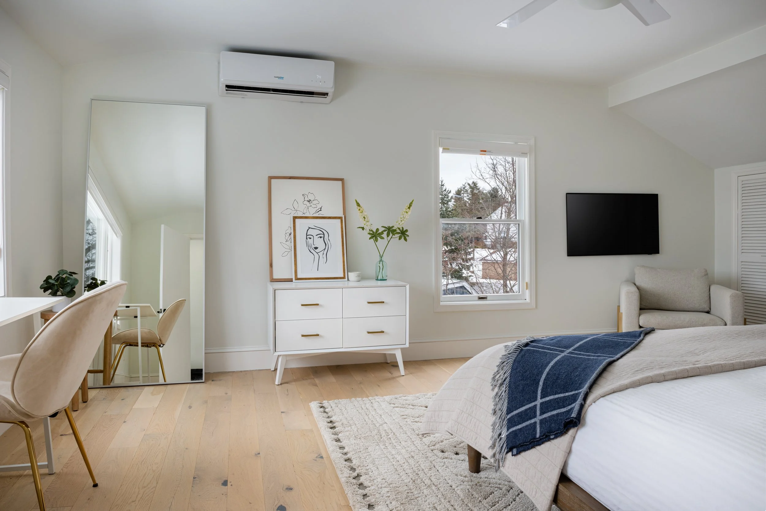 Indulge in a peaceful night's sleep in one of our three spacious bedrooms. Two of these rooms feature plush king-sized beds, while the third offers two twin beds and a crib. Each bedroom has its own full bathroom. Our attention to detail includes luxurious bedding, ensuring a comfortable and rejuvenating stay.