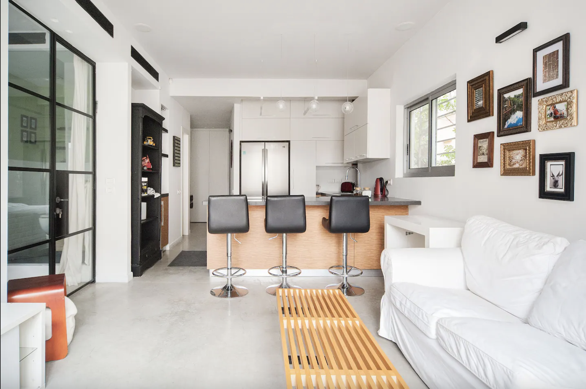 Our beautifully designed apartment is situated on a serene street next to Tel Aviv’s Basel Square, in the heart of the city’s charming Old North. Just a 7-minute walk to the beach and the stunning Park Hayarkon, it offers the perfect blend of tranquility and convenience.