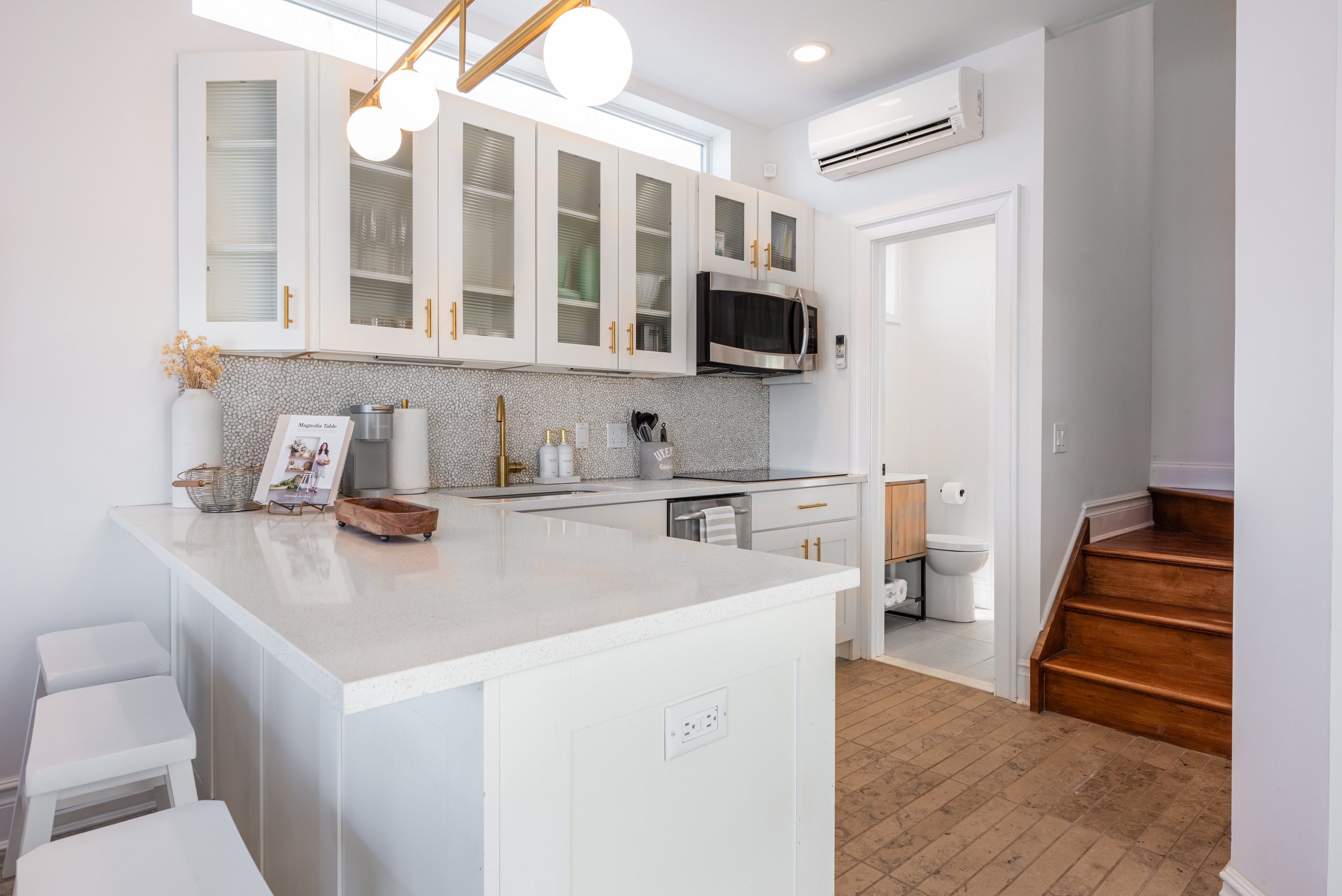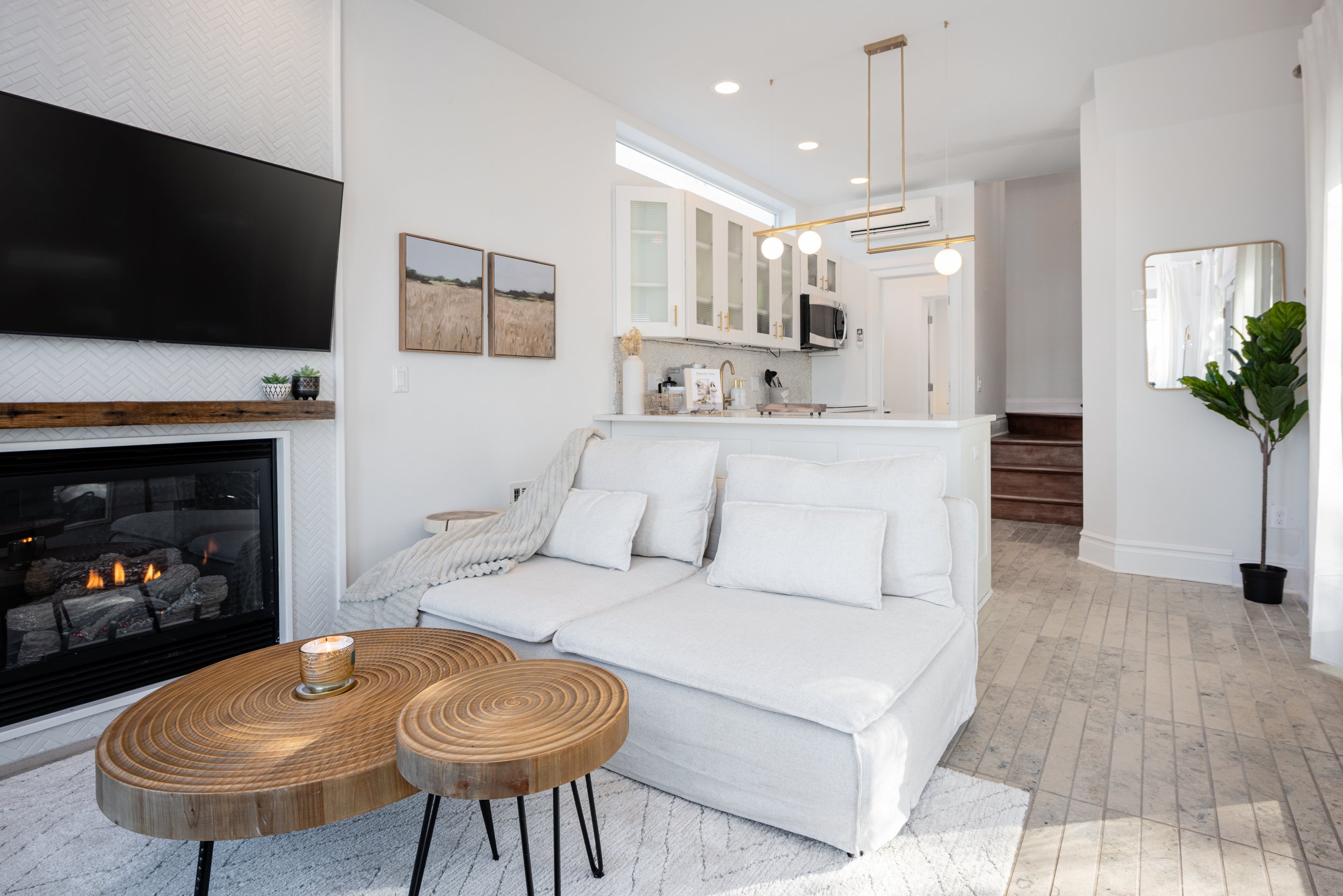 The living area is designed with relaxation in mind, complete with a real gas fireplace, 1GB high-speed internet, and a flat-screen TV equipped with all the popular streaming services. Our fully stocked kitchen makes meal preparation a breeze, and the washer/dryer ensures you have all the amenities you need for an extended stay.