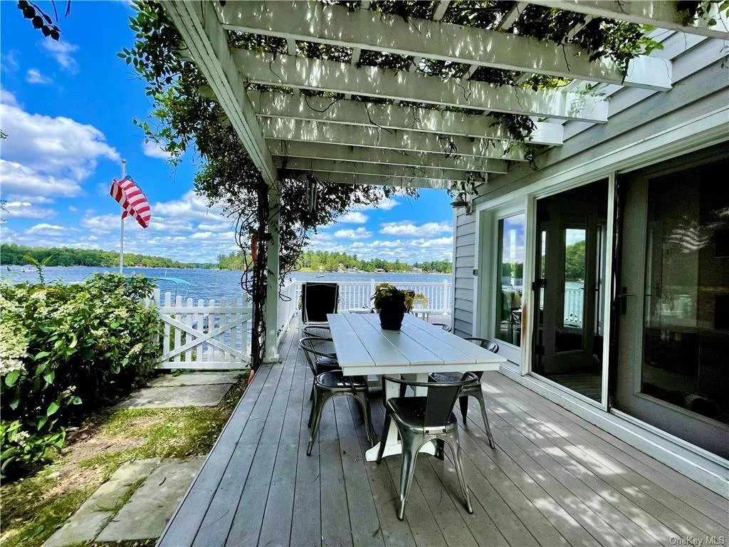 Now, step outside onto our spacious deck, right on the water, and take in the stunning surroundings while grilling up a feast on the BBQ or cozying up around the gas firepit. Enjoy al fresco dining in our picturesque vine-covered patio, which can comfortably accommodate up to 6 guests.